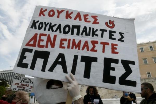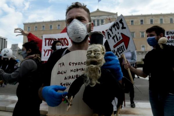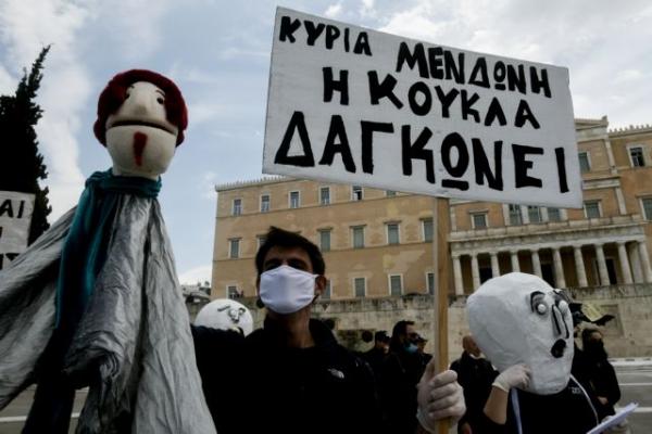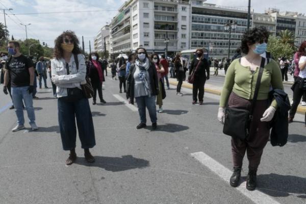 «Φοράμε μάσκα αλλά δεν σωπαίνουμε» – Καλλιτέχνες διαμαρτύρονται στο Σύνταγμα [Εικόνες]