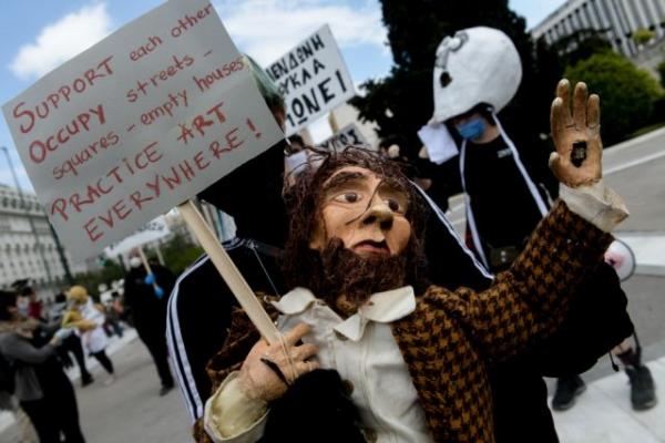Στο Σύνταγμα έχουν συγκεντρωθεί οι εργαζόμενοι στον χώρο του Πολιτισμού ζητώντας ενίσχυση στον τομέα τους μετά της κυβερνητικές εξαγγελίες για ένα καλοκαίρι χωρίς - ή με ελάχιστα- θεάματα