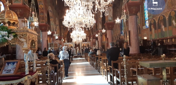 Η σορός του ετέθη σε λαϊκό προσκύνημα από τις 4 έως τις 5 το απόγευμα και στο χρονικό αυτό διάστημα, είχαν την ευκαιρία εκατοντάδες Ροδίτες (η είσοδος στον ιερό ναό επιτρέπονταν σε μικρές ομάδες) να πουν με τον δικό τους τρόπο το «στερνό» αντίο.