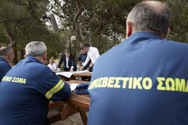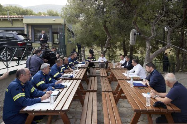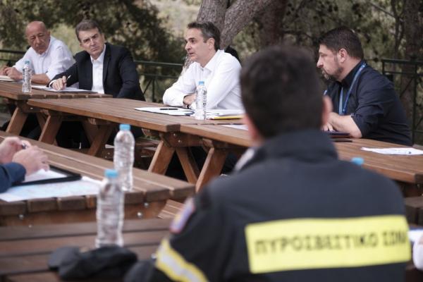 Για τις προετοιμασίες και τον επιχειρησιακό σχεδιασμό του Πυροσβεστικού Σώματος κατά την τρέχουσα αντιπυρική περίοδο ενημερώθηκε σήμερα ο Πρωθυπουργός Κυριάκος Μητσοτάκης, ο οποίος συναντήθηκε στον Υμηττό με τον Υπουργό Προστασίας του Πολίτη Μιχάλη Χρυσοχοΐδη, τον Υφυπουργό αρμόδιο για την Πολιτική Προστασία και τη Διαχείριση Κρίσεων Νίκο Χαρδαλιά και την ηγεσία της Πυροσβεστικής.