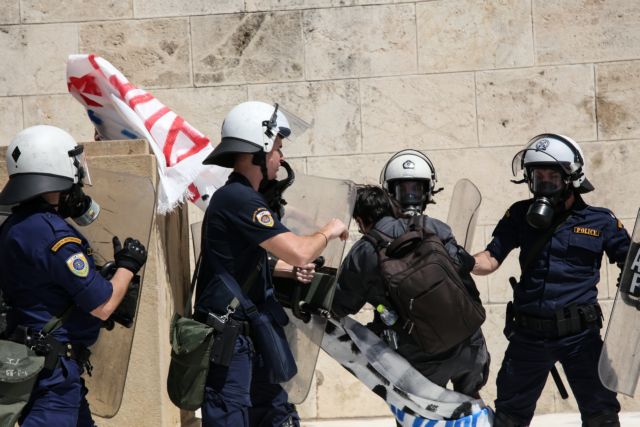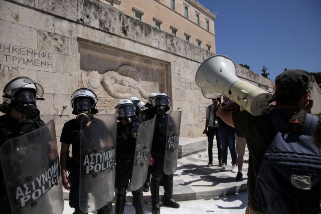 Διαδηλωτές εκπαιδευτικοί προσπάθησαν να ανέβουν τα σκαλιά στον Άγνωστο Στρατιώτη και εμποδίστηκαν από τις ισχυρές δυνάμεις των ΜΑΤ που βρίσκονται στο σημείο.