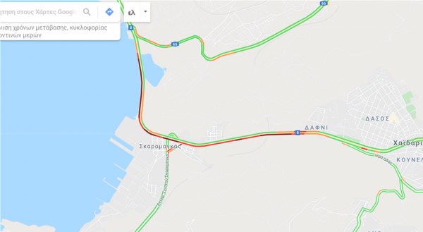 Συγκεκριμένα, η κίνηση που έχει προκαλέσει το τροχαίο εκτείνεται λίγα μέτρα μετά τα Ελληνικά Πετρέλαια Ασπροπύργου μέχρι το κέντρο Φιλοξενίας Προσφύγων Σκαραμαγκά, και στη λεωφόρο Αθηνών, στο ρεύμα προς Αθήνα, από την Ορφέως έως το Άλσος Δαφνίου.