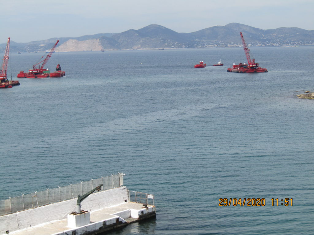 Όπως καταγράφεται από συνεργάτες του Ινστιτούτου Θαλάσσιας Προστασίας «Αρχιπέλαγος», έχει ήδη ξεκινήσει η διαδικασία βυθοκόρησης και απόρριψης του θαλάσσιου ιζήματος, ενώ σύμφωνα με την ΜΠΕ που έχει υποβληθεί προς τις αρμόδιες αρχές, ο ανάδοχος του έργου προγραμματίζει να αντλήσει από το λιμάνι του Πειραιά και να απορρίψει στον Σαρωνικό, τουλάχιστον 620.600m3 βυθοκορημάτων!