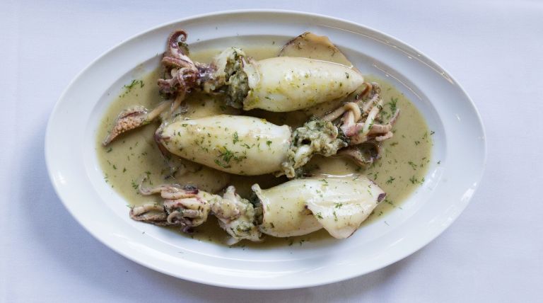 2 κιλά καλαμάρια – 6 μεσαία καλαμάρια – ζητούμε από τον ιχθυοπώλη μας να τα καθαρίσει.