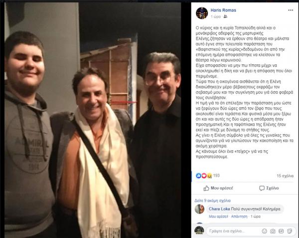 Χάρης Ρώμας: Η συγκινητική ανάρτηση του για την οικογένεια Τοπαλούδη