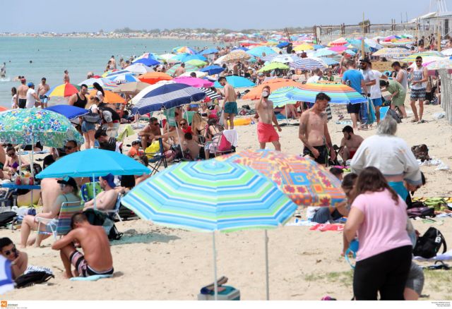 Reuters: Η Ελλάδα επιστρέφει στις παραλίες εν μέσω καύσωνα, αλλά και τις ομπρέλες σε απόσταση