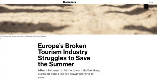 Η είδηση του ανοίγματος του των οργανωμένων παραλιών στην Ευρώπη φιλοξενείται από το πρωί δεύτερο θέμα στο παγκόσμιο site του Bloomberg. Το άρθρο αρχίζει με αναφορά στην Ελλάδα και με σειρά φωτογραφιών από τις προετοιμασίες που έγιναν στις οργανωμένες παραλίες της χώρας για να υποδεχτούν τον κόσμο.