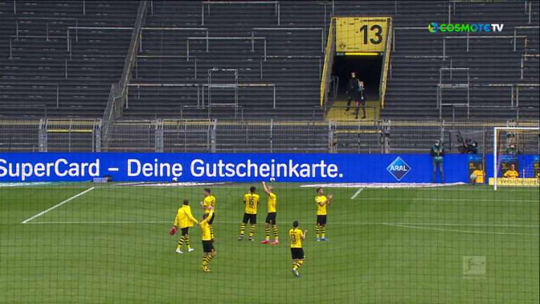 Κόσμος φυσικά δεν υπήρχε στις κερκίδες της θρυλικής έδρας της ομάδας αλλά αυτό δεν αποθάρρυνε καθόλου τους ποδοσφαιριστές της Ντόρτμουντ, να χαρούν με την ψυχή τους τον θρίαμβο.