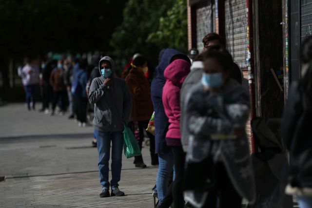 Κάποιοι από τους νεόπτωχους της Ισπανίας, που επλήγησαν από την κρίση του νέου κοροναϊού, σχημάτισαν ουρές στην εργατική συνοικία Αλούτσε, περιμένοντας να παραλάβουν τσάντες με είδη πρώτης ανάγκης, εξαρτώμενοι πλέον σε μεγάλο βαθμό από τις δωρεές.