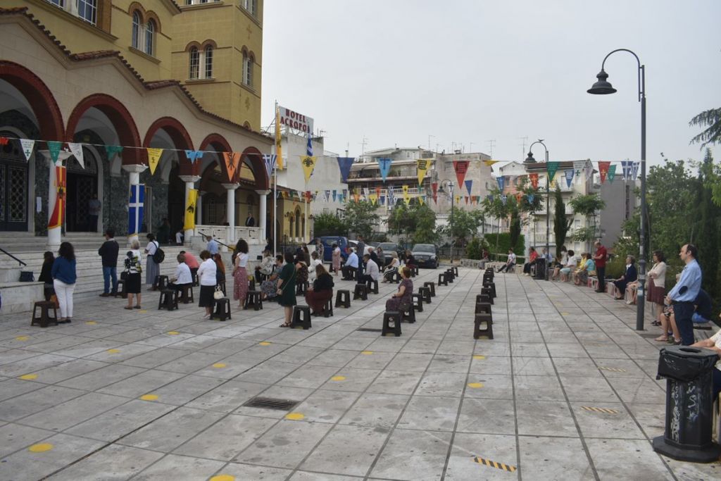 Όπως φαίνεται στις φωτογραφίες του onlarissa.gr και εκεί είχαν τοποθετηθεί σκαμπό στους εξωτερικούς χώρους προκειμένου να μπορέσουν να παρακολουθήσουν τη λειτουργία όσοι δεν κατάφεραν να μπουν στον εσωτερικό χώρο των εκκλησιών.