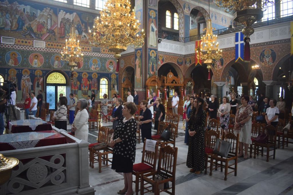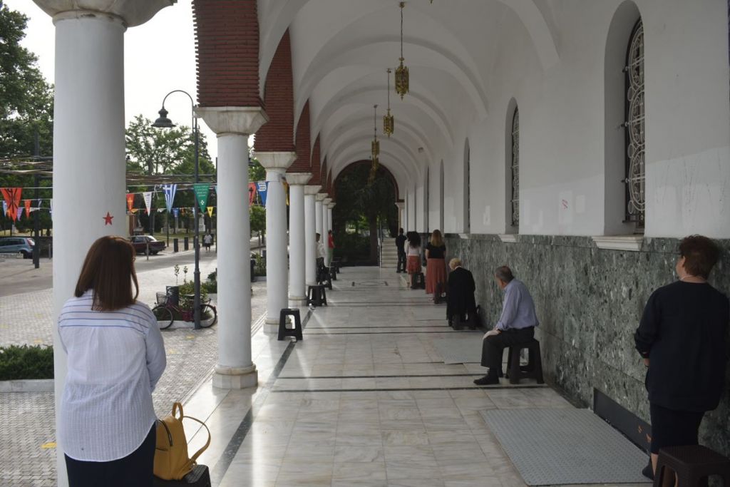 Σε περιπτώσεις όπως αυτή του Μητροπολιτικού Ναού ή και του Ιερού Ναού Αγίας Σοφίας που ο αριθμός των πιστών είχε φτάσει το επιτρεπόμενο όριο που ορίζεται με βάση τα τετραγωνικά κάθε εκκλησίας, είχαν τοποθετηθεί καρέκλες με τις προβλεπόμενες αποστάσεις στα προαύλια, ενώ η Θεία Λειτουργία ακουγόταν από τα μεγάφωνα.