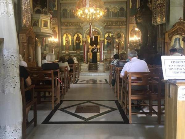 Μετά φόβου Θεού πίστεως και αγάπης», προσήλθε την Κυριακή συντεταγμένα το πλήρωμα της εκκλησίας στους Ιερούς Ναούς ανά την επικράτεια. Στο κέντρο των Αθηνών, τηρήθηκαν τα υγειονομικά μέτρα και μάλιστα στον Αγ. Σπυρίδωνα στο Παγκράτι, οι νεοκόροι είχαν διαγραμμίσει και τον προαύλιο χώρο τοποθετώντας παράλληλα και καρέκλες, ένεκα της ζέστης και του προχωρημένου της ηλικίας των περισσοτέρων. Στον Άγιο Διονύσιο τον Αρεοπαγίτη στο Κολωνάκι, ο ιερός χώρος γέμισε νωρίς με τον μέγιστο επιτρεπόμενο αριθμό με αποτέλεσμα όσοι πήγαν μετά τις 9 να μην καταφέρουν να παρακολουθήσουν τη Θεία Λειτουργία.
