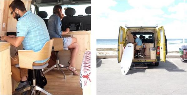 Το μικρό βαν που είναι εξοπλισμένο με 2 θέσεις εργασίας, ένα μόντεμ 4G, μια ειδική μπαταρία και ένα απόθεμα 20 λίτρων νερού, δεν προσφέρεται για co-working. Μπορεί κάποιος μαζί με την ομάδα του να νοικιάσει το όχημα για 60 ευρώ την ημέρα και να το παραλάβει στο Aix-en-Provence της Γαλλίας.