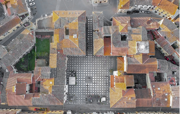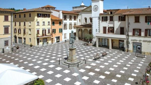 «Η περιοχή της Τοσκάνης όρισε τα 1,8 μέτρα ως την ασφαλή απόσταση που πρέπει να τηρεί ο κόσμος για να περιοριστεί η εξάπλωση του ιού» τόνισαν από το Caret Studio. Τα σημάδια, τα λευκά τετράγωνα, είναι από αδιάβροχη βαφή που μπορεί να εύκολα να αφαιρεθεί, και να επανέλθει η πλατεία στην αρχική μορφή της.