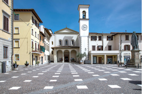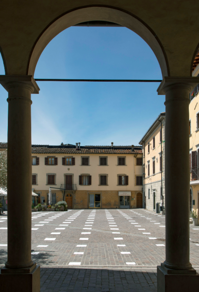 Μια εγκατάσταση τοποθέτησε το στούντιο Caret Studio σε πλατεία της πόλης Vicchio, πλησίον της Φλωρεντίας, για να ενθαρρύνει την κοινωνική αποστασιοποίηση ως λύση για εκ νέου χρήση δημόσιων χώρων αφότου αρθούν οι επιβεβλημένοι από την πανδημία περιορισμοί.