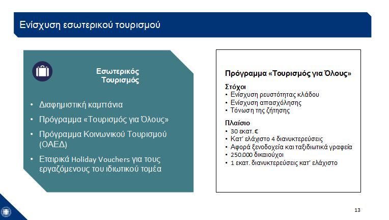 Τριπλασιάζεται η χρηματοδότηση του προγράμματος κοινωνικού τουρισμού.