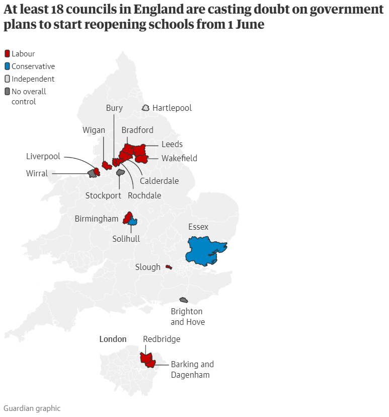 Ωστόσο, σύμφωνα με τον Guardian, περισσότερα από 1.500 δημοτικά σχολεία δηλώνουν έτοιμα να αψηφήσουν τις κυβερνητικές εντολές και να μείνουν κλειστά.