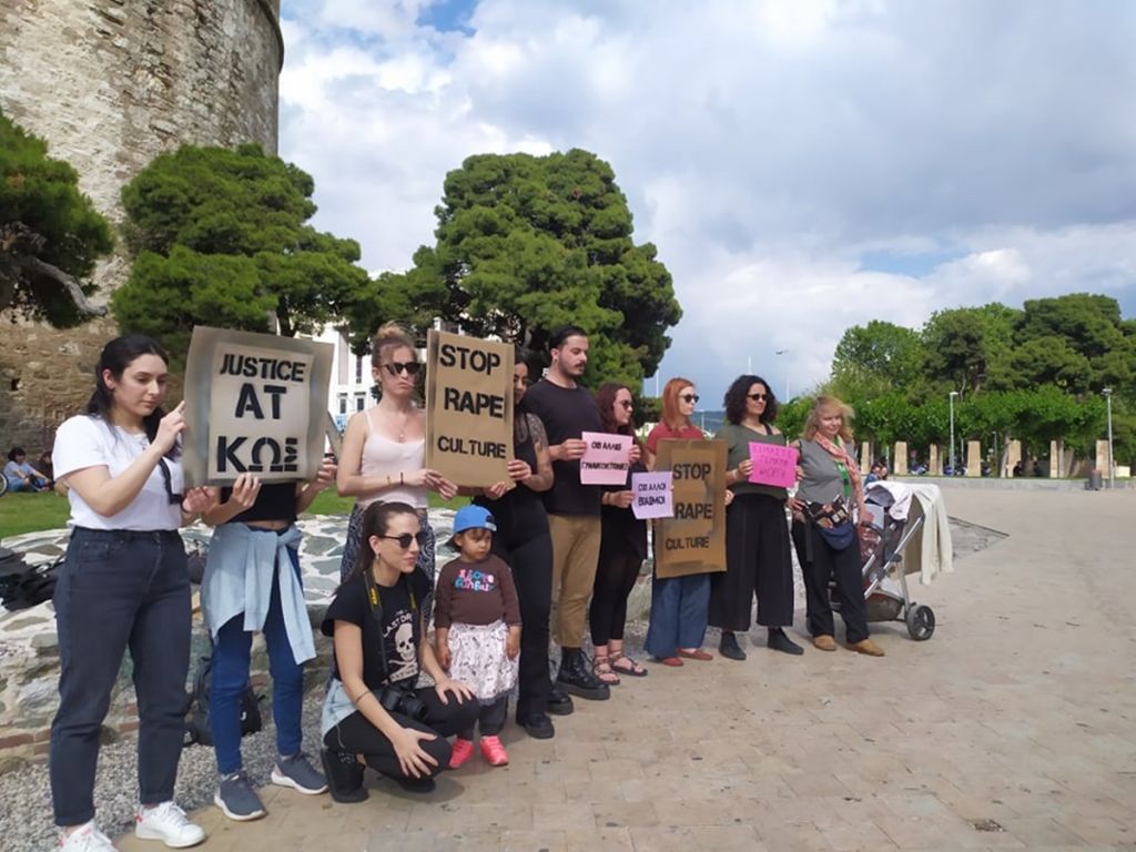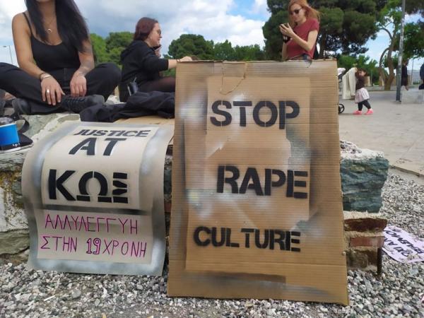Δράση ευαισθητοποίησης κατά της «κουλτούρας του βιασμού» και αλληλεγγύης στην 19χρονη που βιάστηκε ομαδικά στη Ρόδο, λίγες μέρες μετά τον βιασμό και τη δολοφονία της Ελένης Τοπαλούδη, πραγματοποίησαν το απόγευμα στο Λευκό Πύργο, φοιτητές και φοιτήτριες.