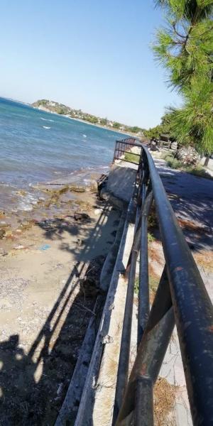 Η εικόνα της ακτής είναι δραματική, με το πλακόστρωτο του πεζοδρομίου σε πολλά σημεία να έχει καταρρεύσει, γεμίζοντας μπάζα τη θάλασσα και με τα κιγκλιδώματα να είναι σκουριασμένα. Το αποτέλεσμα είναι οι κάτοικοι και επισκέπτες της περιοχής να κινδυνεύουν ανά πάσα στιγμή να χάσουν -κυριολεκτικά- τη γη κάτω από τα πόδια τους.