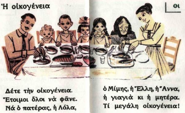 Φυσικά ο τόνος ήταν περισπωμένη, καθώς Μακρά παραλήγουσα πριν από βραχεία λήγουσα παίρνει περισπωμένη… Εκτός από ανάγνωση, το αναγνωστικό μάθαινε στα παιδιά της Α’ δημοτικού και κανόνες καλής συμπεριφοράς, αλλά και τη ζωή μέσα στην οικογένεια.