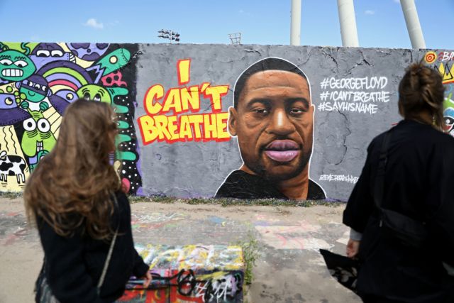 Με πλακάτ και συνθήματα για τη δολοφονία του Φλόιντ