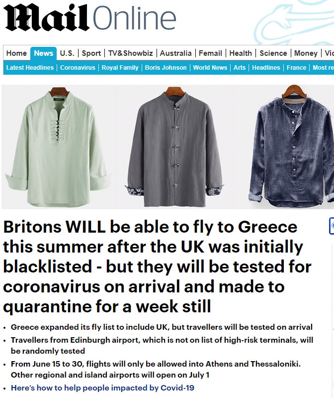 Με ενθουσιασμό υποδέχτηκαν τα βρετανικά ΜΜΕ το γεγονός ότι οι βρετανοί θα μπορέσουν να έρθουν στην Ελλάδα το φετινό καλοκαίρι, έστω και αν το ταξίδι τους συνοδεύεται από καραντίνα τουλάχιστον μιας εβδομάδας