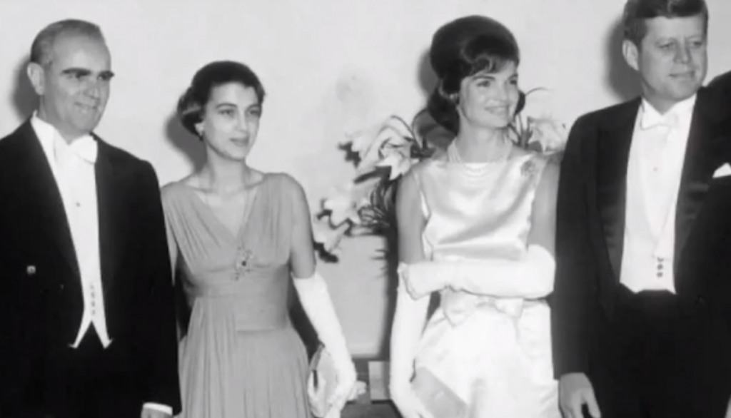 Στο Λευκό Οίκο δίπλα στην Τζάκι Κένεντι, κατά τη διάρκεια της επίσκεψης του Κωνσταντίνου Καραμανλή.