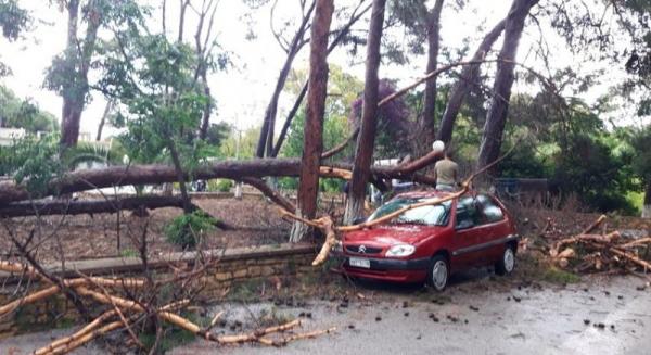 Όπως περιέγραψε ο ίδιος στην ΕΡΤ, υπάρχουν ζημιές στο οδικό δίκτυο και σε αγροτικούς δρόμους, το νησί έχει πληγεί σχεδόν σε όλη την έκτασή του, ενώ πλημμύρισαν σπίτια και καταστήματα. Δύο άνθρωποι εγκλωβίστηκαν μέσα στα οχήματά τους και διασώθηκαν χάρη στην άμεση παρέμβαση όλων όσοι μπορούσαν να βοηθήσουν.
