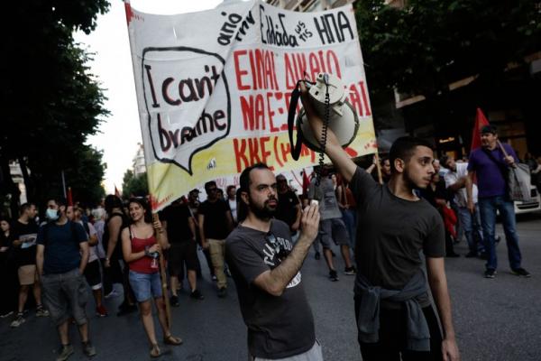 Θεσσαλονίκη: Πορεία διαμαρτυρίας για τη δολοφονία Φλόιντ – Έκαψαν αμερικανική σημαία