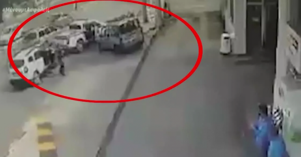 Τους περνούν χειροπέδες με τους υπαλλήλους του βενζινάδικου να παρατηρούν έκπληκτοι τη σκηνή.