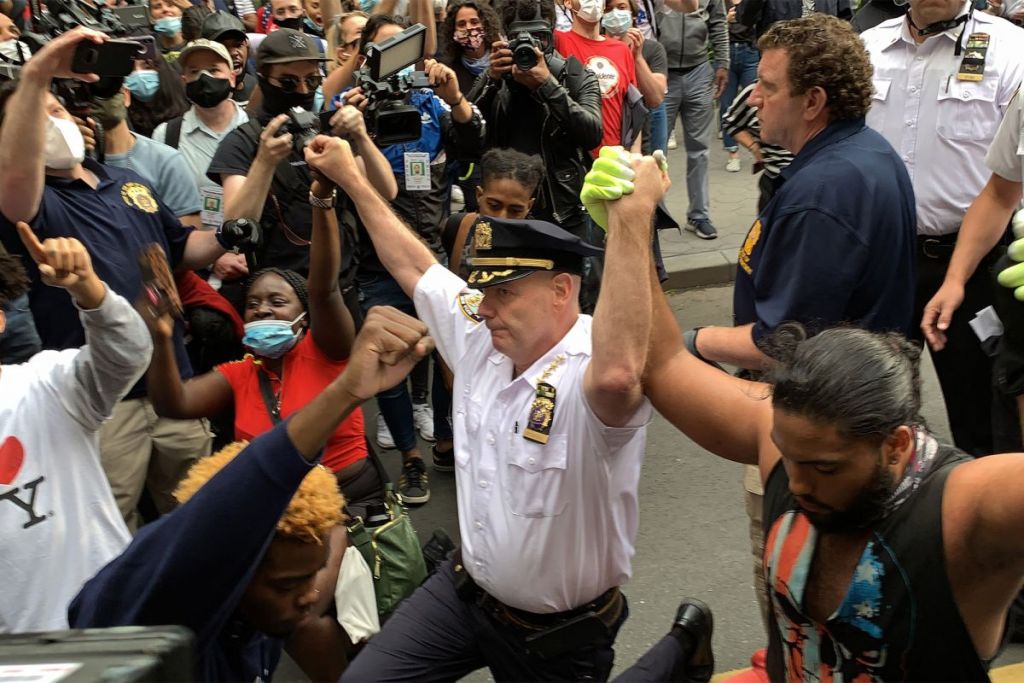 Ο διοικητής του NYPD, του αστυνομικού τμήματος της Νέας Υόρκης γονάτισε και ένωσε τη φωνή του μαζί με άλλους διαδηλωτές σε πορεία διαμαρτυρίας για την δολοφονία του Τζορτζ Φλόιντ.