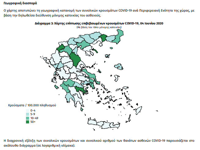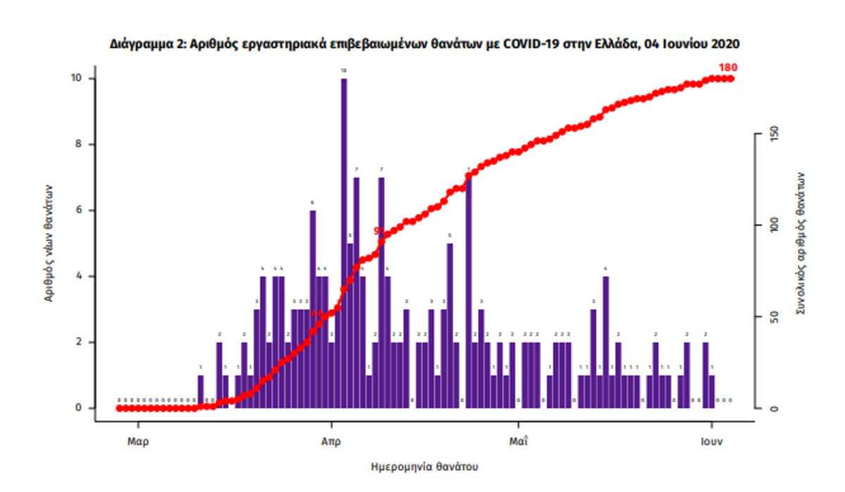 Οι νέοι θάνατοι ασθενών με COVID-19 είναι 1, ενώ από την έναρξη της επιδημίας έχουν καταγραφεί συνολικά 180 θάνατοι. Κατά πληροφορίες, ο 180ος νεκρός ήταν ο άνδρας που είχε καταλήξει στις 28 Μαΐου σε στρατιωτικό νοσοκομείο, αλλά ο θάνατός του δηλώθηκε σήμερα.