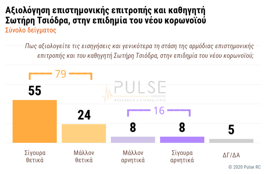Το 79% αξιολογεί θετικά τους χειρισμούς της επιτροπής λοιμωξιολόγων και του Σ. Τσιόδρα κατά τη διάρκεια της πανδημίας, ενώ το 16% αρνητικά.