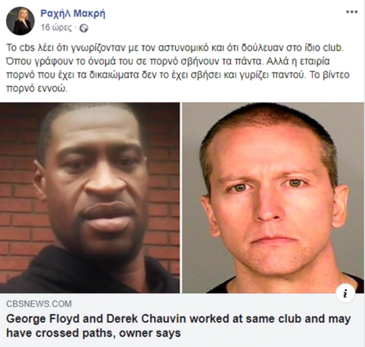 Απίστευτο παραλήρημα της Ραχήλ Μακρή για τον Φλόιντ: Ο Σόρος, ο Τραμπ, οι τζιχαντιστές και ο κοροναϊός