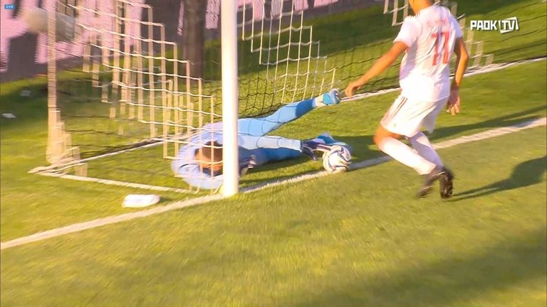 Οπως μπορείτε να δείτε στην φωτογραφία ο τερματοφύλακας του ΠΑΟΚ έχει σταματήσει την μπάλα στην γραμμή μετά την προσπάθεια του αμυντικού του Ολυμπιακού, κάτι που σημαίνει ότι υπάρχει αλλαγή κατοχής.