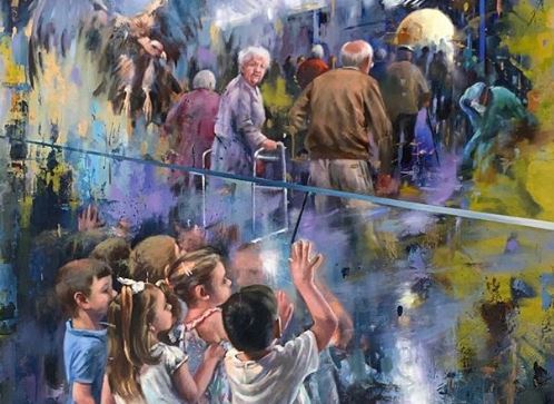 Ο συγκλονιστικός πίνακας του ισπανού Lucena δείχνει παιδιά να αποχαιρετούν τους παππούδες και τις γιαγιάδες που «έφυγαν» από τη ζωή τους τελευταίους μήνες.
