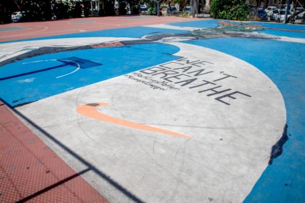 Λίγες ώρες νωρίτερα, το γνωστό γκραφίτι στο γηπεδάκι του Τρίτωνα, στην παλιά γειτονιά του Γιάννη Αντετοκούνμπο, ο οποίος μάλιστα πρόσφατα πήρε μέρος στις διαδηλώσεις στις ΗΠΑ, εμπλουτίστηκε με ένα ακόμη σημαντικό μήνυμα κατά του ρατσισμού.