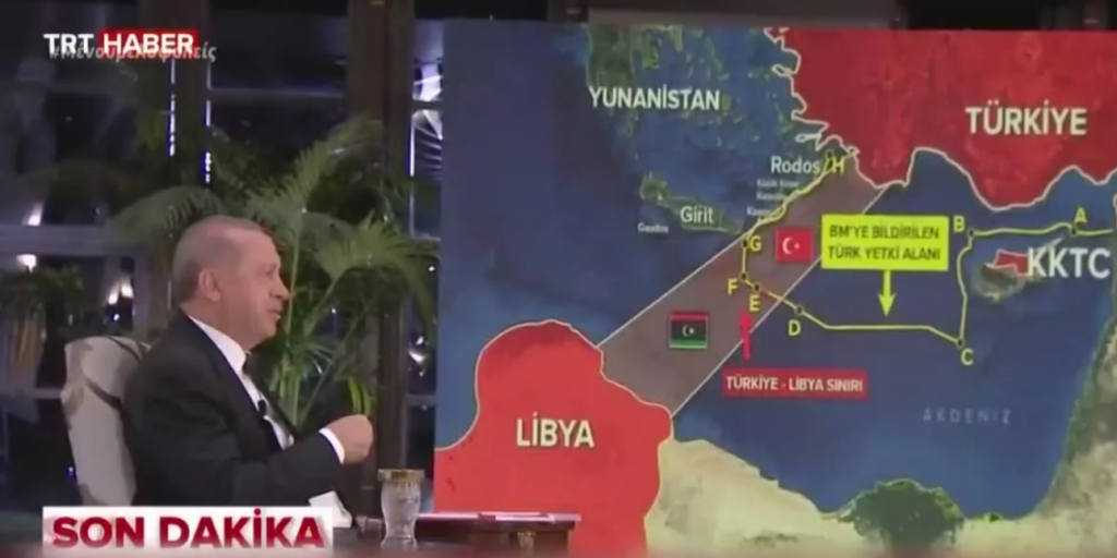 Χάρτες, πίνακες, απειλές και όνειρα για όλη τη λεκάνη της Μεσογείου από τον Ερντογάν.