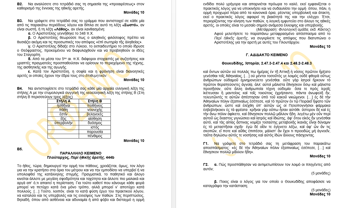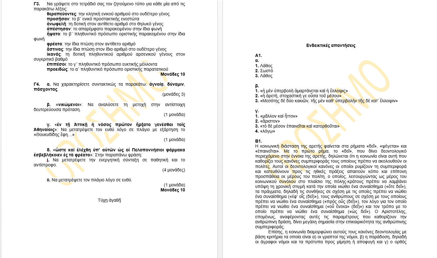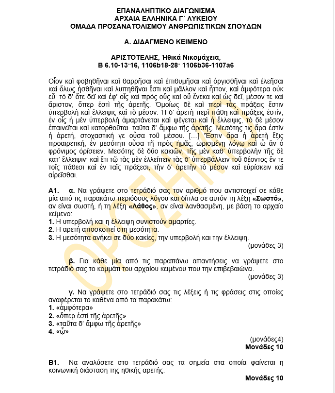Παρακάτω μπορείτε να δείτε προτεινόμενο θέμα Πανελληνίων εξετάσεων για την Αρχαία Ελληνική Γλώσσα