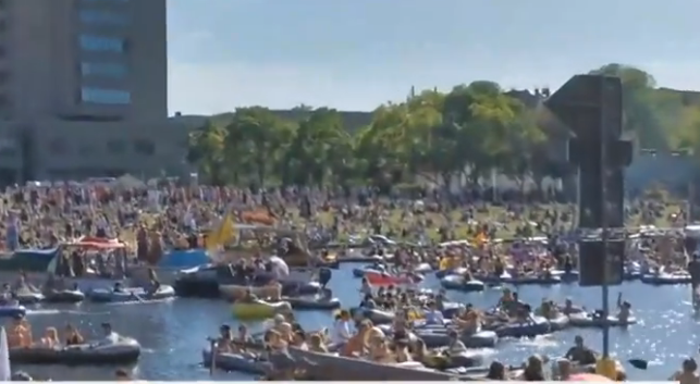 Στον ποταμό Σπρέε το Βερολίνο «πνίγηκαν» τελικά τα όποια μέτρα προστασίας, καθώς το πάρτι που διοργανώθηκε εκεί συγκέντρωσε περισσότερα από τρεις χιλιάδες άτομα.