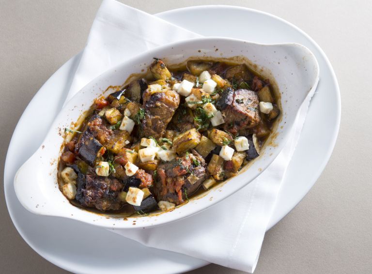Μοσχαρίσια ελιά με μελιτζάνες, βασιλικό και φέτα