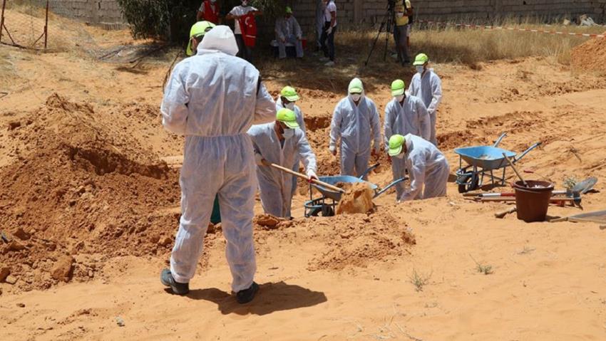 Σε ανακοίνωσή της η Αποστολή των Ηνωμένων Εθνών για την Υποστήριξη της Λιβύης (UNSMIL) «καταγράφει με φρίκη τις πληροφορίες για τουλάχιστον οκτώ ομαδικούς τάφους που βρέθηκαν τις τελευταίες ημέρες, οι περισσότεροι στην Ταρχούνα», 65 χιλιόμετρα νοτιοανατολικά της Τρίπολης.