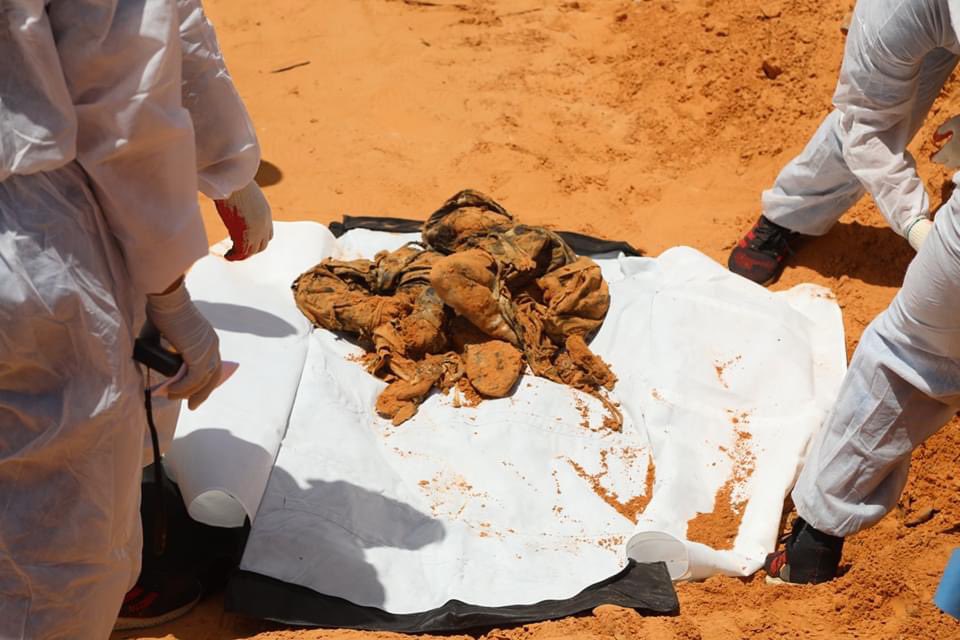 بدأت منذ أمس الثلاثاء الهيئة العامة للبحث والتعرف على المفقودين والهلال الأحمر الليبي مصراتة العمل على انتشال و جمع الجثث، احدى الجثث التي انتشلت لطفلة عمرها 12 سنة مكبلة اليدين. pic.twitter.com/cXhB9eO9fE— المركز الاعلامي لعملية بركان الغضب (@BurkanLy) June 10, 2020