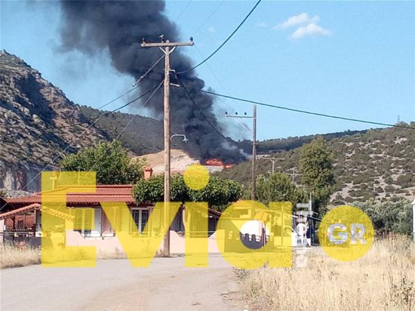 Η φωτιά, σύμφωνα με πληροφορίες του eviathema.gr έχει πάρει διαστάσεις, ενώ σημείο σπεύδουν πυροσβεστικά οχήματα για την κατάσβεση.
