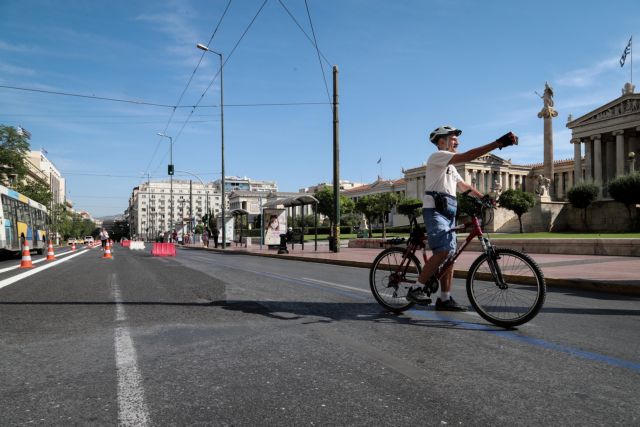 «Από σήμερα το πρωί τρεις από τις έξι λωρίδες αποδίδονται στους πεζούς και τους ποδηλάτες σε 7.000 τ.μ. ελεύθερου δημόσιου χώρου, που θα ομορφύνουν με παγκάκια και περισσότερες από 250 ζαρντινιέρες με πράσινο. Δημιουργείται για πρώτη φορά στην Αθήνα μία ασφαλής, υπέροχη ποδηλατική διαδρομή που ενώνει το Σύνταγμα με την Ομόνοια. Και τα Μέσα Μαζικής Μεταφοράς θα κινούνται ανεμπόδιστα και γρήγορα».