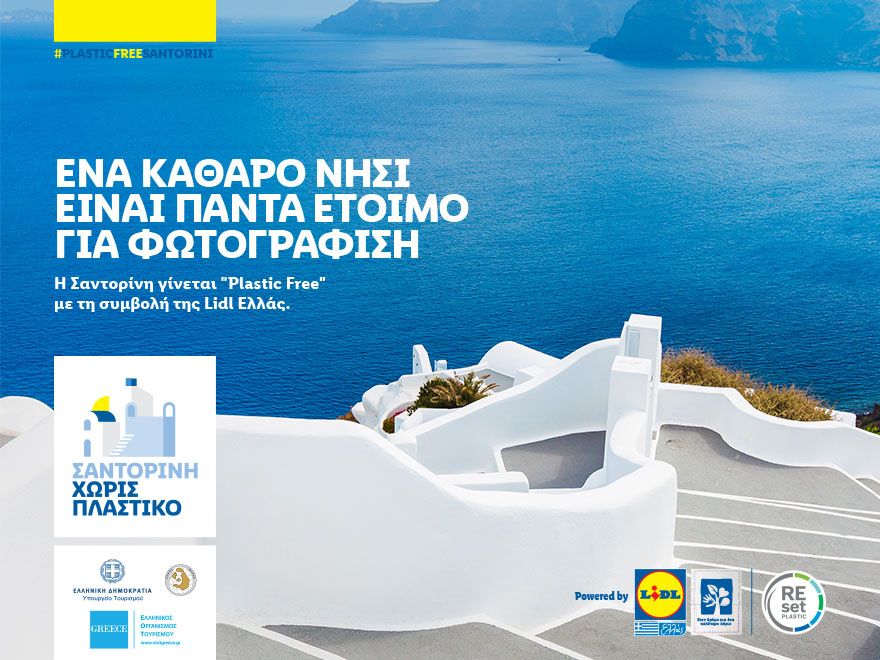 Η καμπάνια «Plastic Free Santorini», είναι μια κοινή πρωτοβουλία του Υπουργείου Τουρισμού, του Δήμου Σαντορίνης και της Lidl Ελλάς, που έχει ως στόχο την ανακήρυξη της Σαντορίνης, ως ενός νησιού με ιδιαίτερες περιβαλλοντικές ευαισθησίες, αλλά και διαχρονικό συμβολισμό και ξεδιπλώνεται ως μια πρωτότυπη, εναλλακτική τουριστική καμπάνια που είναι ταυτόχρονα παγκόσμιο μήνυμα βιώσιμης ανάπτυξης για το ίδιο το νησί αλλά και τη χώρα μας.