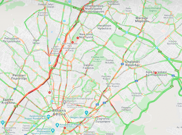 Από νωρίς το πρωί η κίνηση στο κέντρο επιβαρύνθηκε λόγω τροχαίου ατυχήματος στον Καρέα.