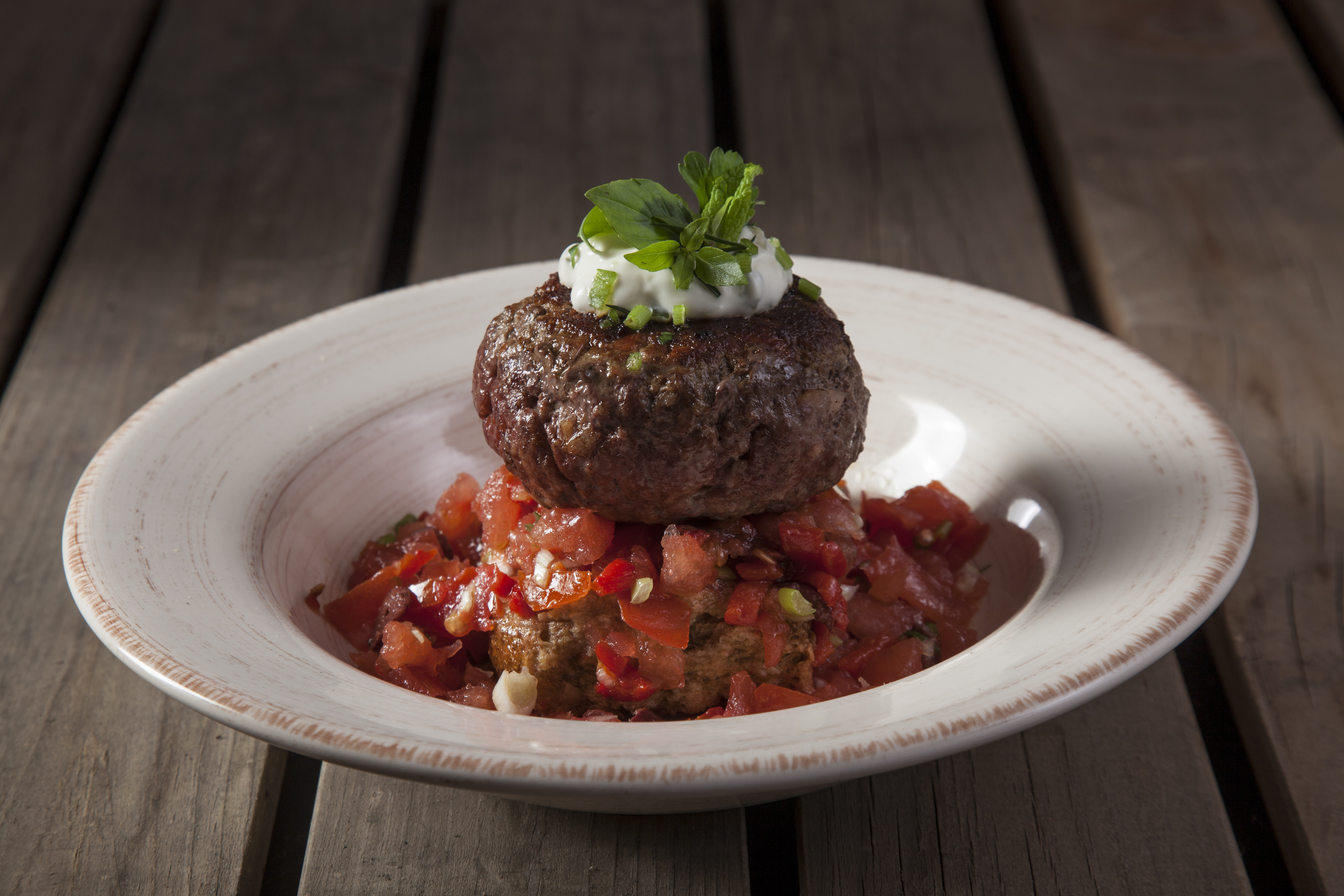Αρωματικό μπιφτέκι με ντάκο και τζατζίκι