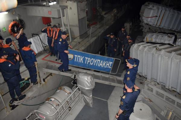 Επίσης, επισκέφθηκε το παράκτιο περιπολικό «ΑΝΔΡΟΜΕΔΑ» και το πετρελαιοφόρο «ΟΥΡΑΝΟΣ», ενώ επέβη στο ταχέο περιπολικό κρούσης «ΤΡΟΥΠΑΚΗΣ» και στην κανονιοφόρο «ΜΑΧΗΤΗΣ» κατά τη διάρκεια των περιπολιών τους. Συνομίλησε με το προσωπικό των πλοίων, ενημερώθηκε για τις αποστολές τους, ενώ παρακολούθησε το έργο τους στη διάρκεια των περιπολιών τους.