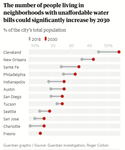 Η έρευνα του Guardian καταδεικνύει ότι η κρίση αυτή θα επιδεινωθεί, καθώς όλο και περισσότεροι φτωχοί πολίτες δεν θα μπορούν να πληρώνουν νερό την επόμενη δεκαετία.